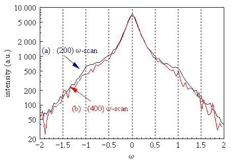 Figure 2: transverse scans of the (h00) reciprocal nodes. (a) qx scan across the (200) ; (b) qx scan across the (400). |