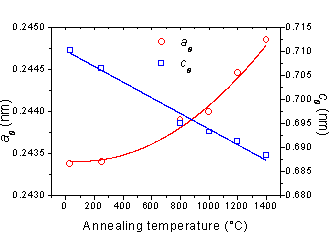temperature evolution of the mean lattice parameters in-plane of graphitic