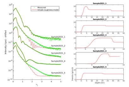 For each sample, one must carefully consider the appropriate level of model complexity for data fitting. Should the model be kept as simple as possible, even if it fails to adequately reproduce the measured data? In cases where the fit is as poor as for some samples shown in Figure 2, how trustworthy are the extracted parameters? Furthermore, is it feasible to fit the electron density depth-profile directly, and if so, can such an approach yield a unique and physically meaningful solution?