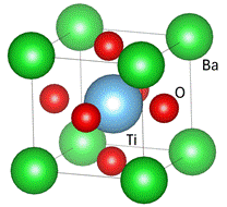 Obrázek 1. Krystalová struktura BaTiO3 (vlevo) a LaNiO3 (vpravo).
