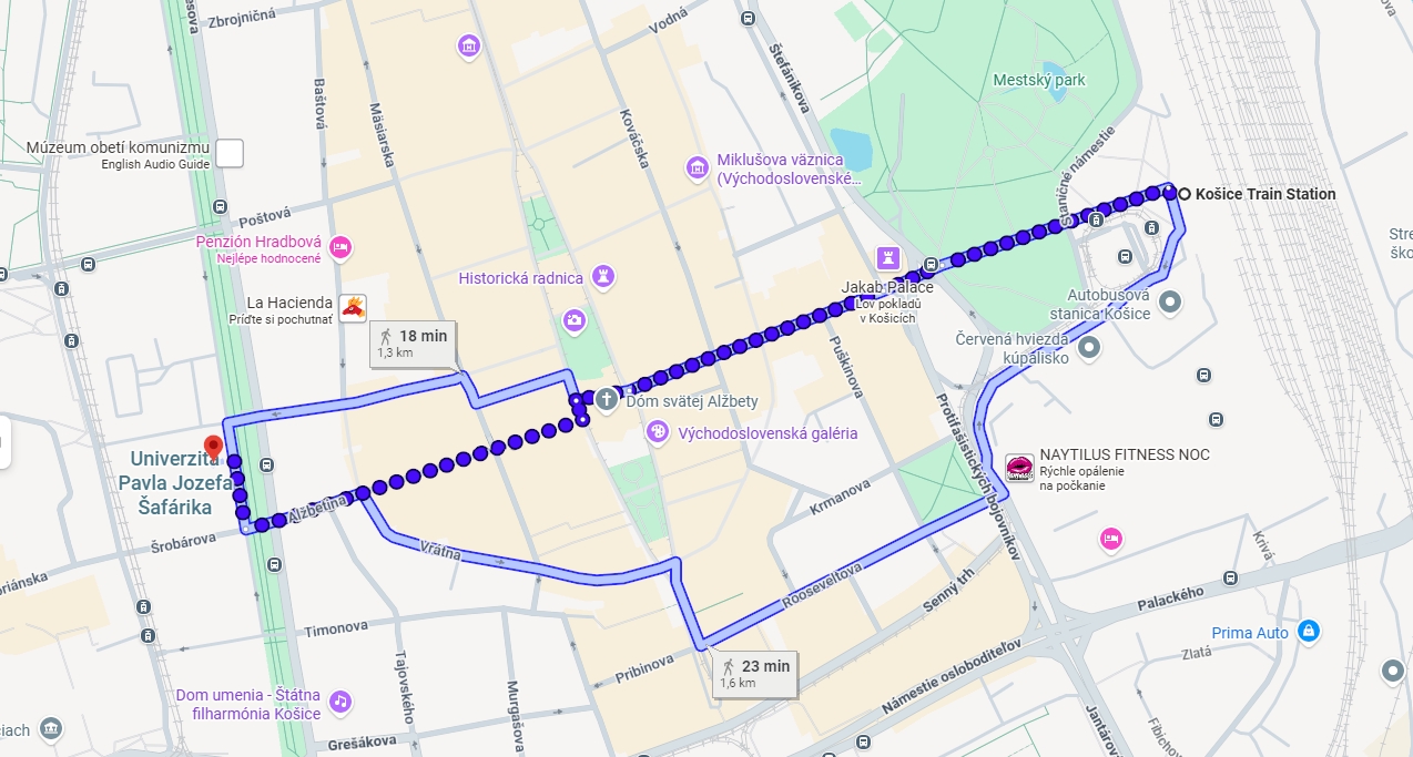 - Pešo zo železničnej stanice (viz mapka)